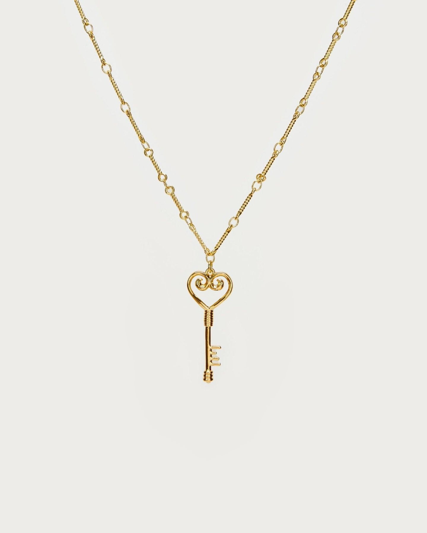 Welcome to the Secret Garden of Love. Use this key to unlock your magical journey. Our intricately crafted pendant necklace is out of the world of Alice in Wonderland, features a heart-shaped design with symmetrical curves that elegantly entwine into a key. It symbolizes the belief in love's power to unlock magical doors and represents discovering hidden answers about love within your heart's secret garden.