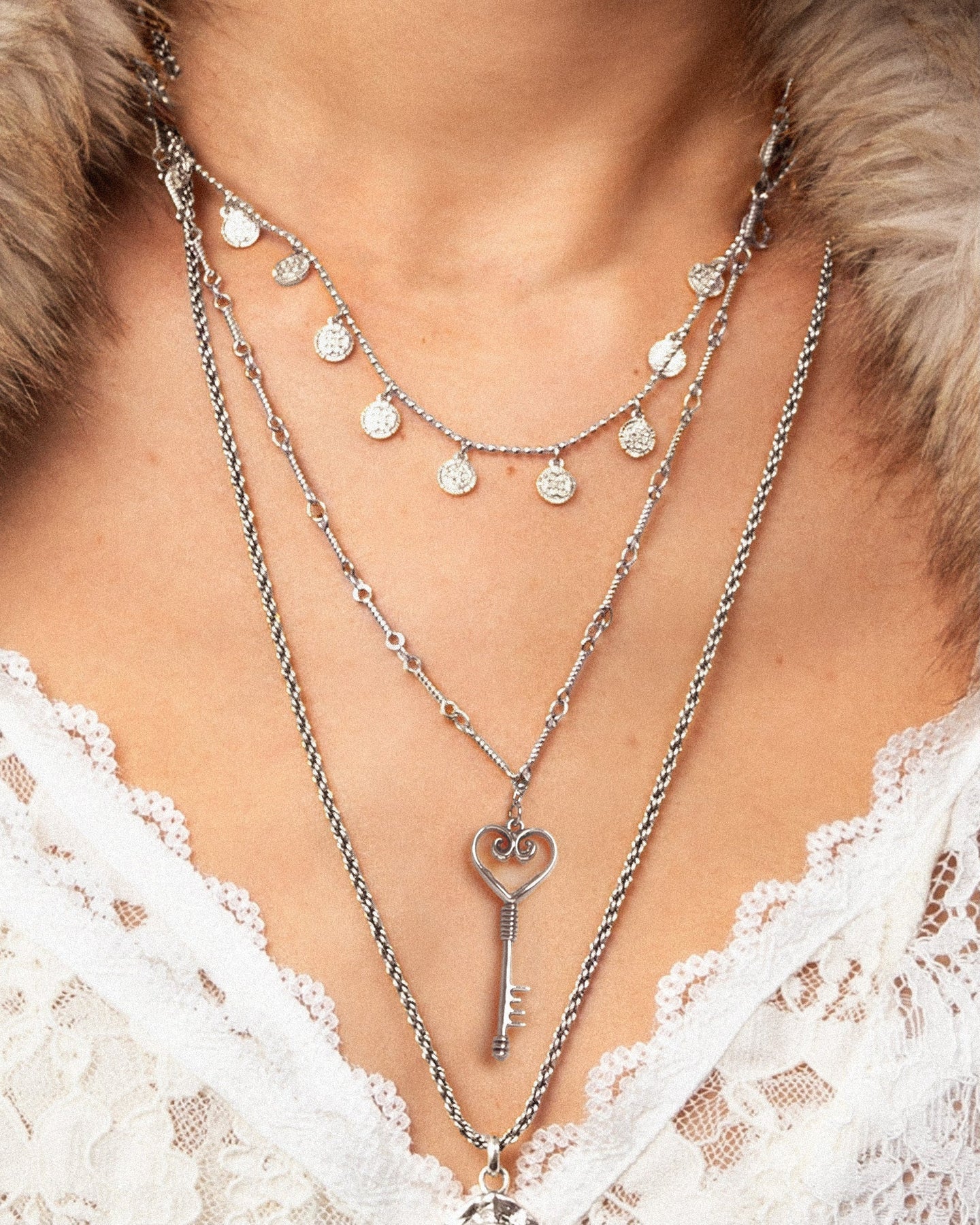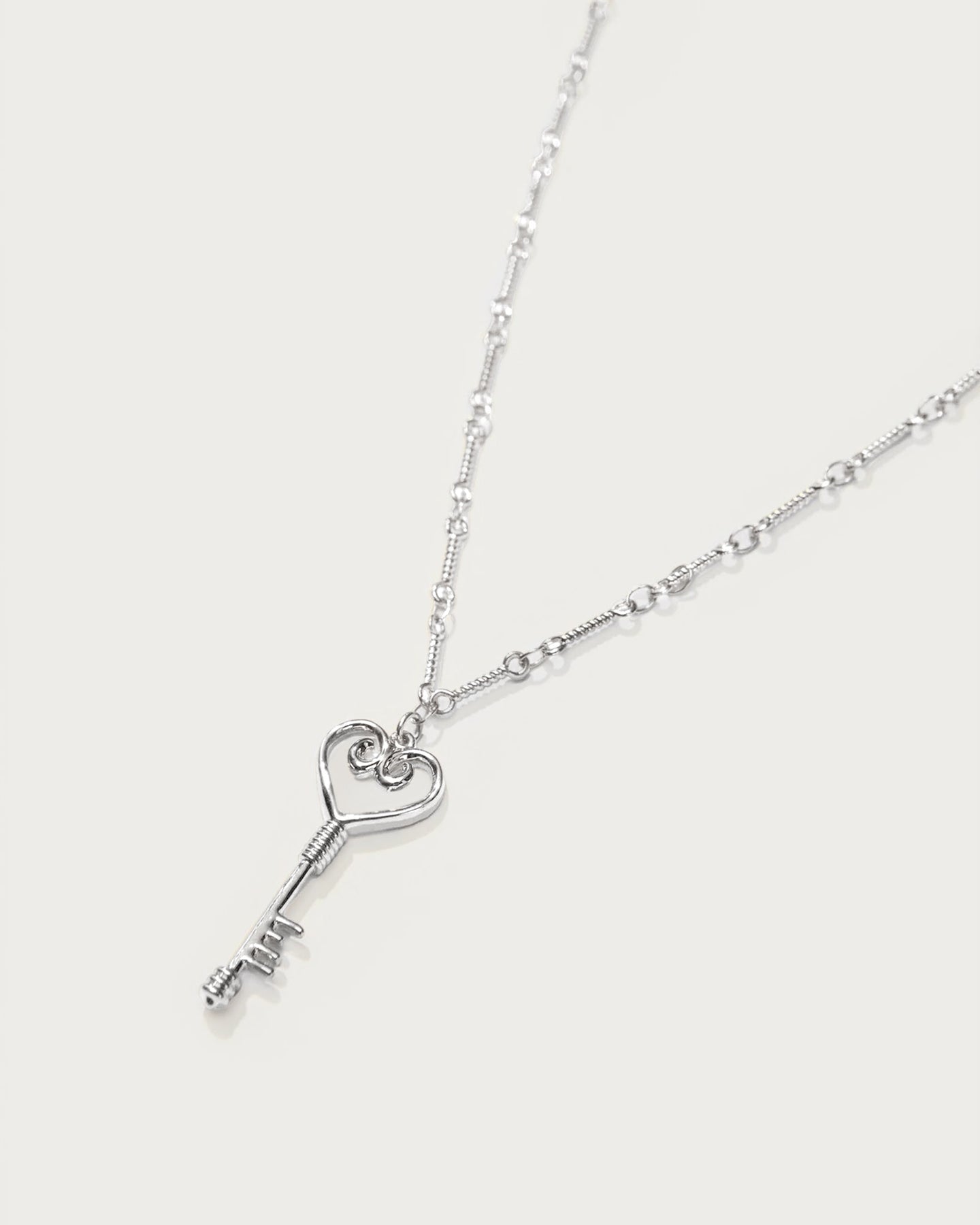 Welcome to the Secret Garden of Love. Use this key to unlock your magical journey. Our intricately crafted pendant necklace is out of the world of Alice in Wonderland, features a heart-shaped design with symmetrical curves that elegantly entwine into a key. It symbolizes the belief in love's power to unlock magical doors and represents discovering hidden answers about love within your heart's secret garden.