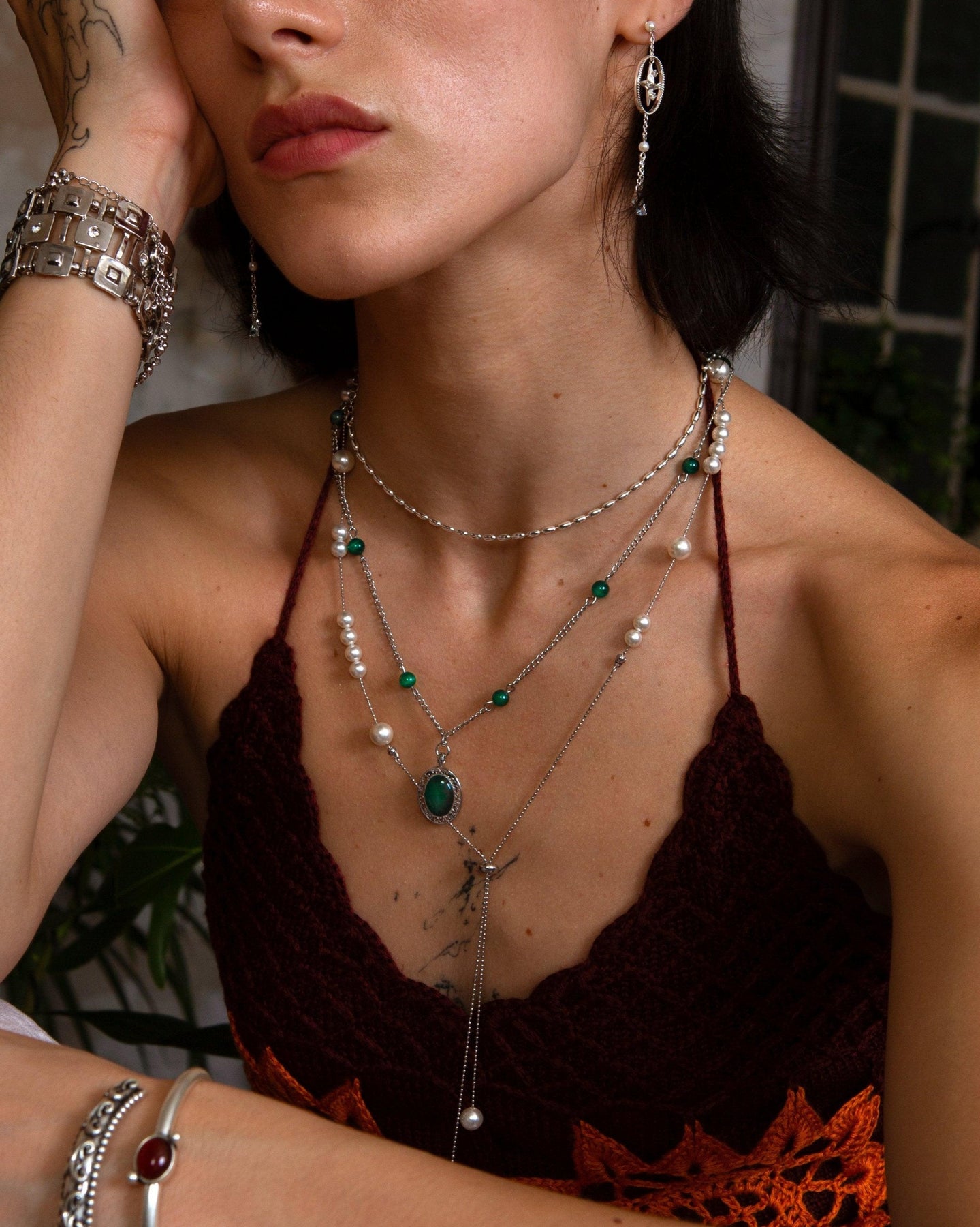 • Platinum plated brass, dyed natural stone