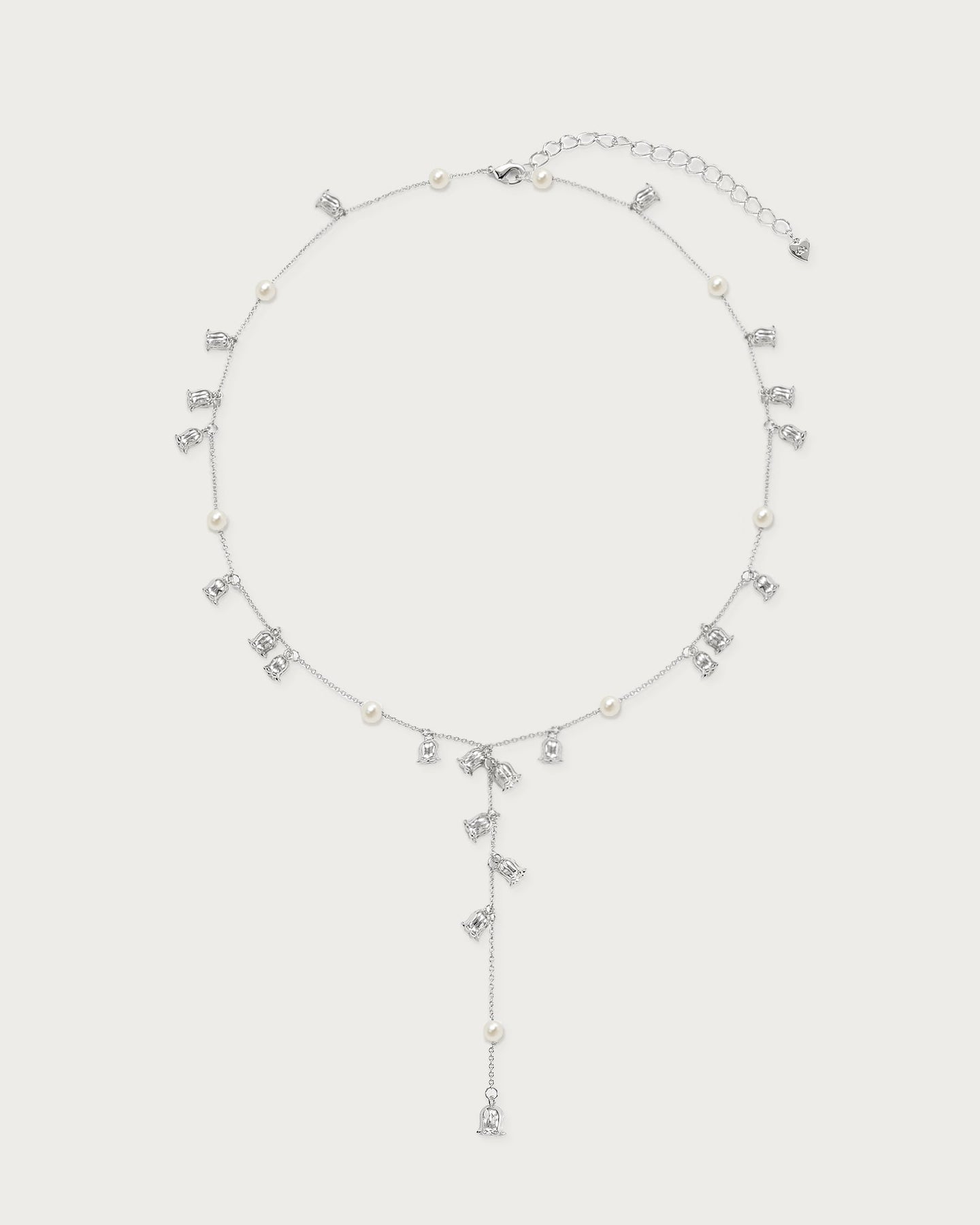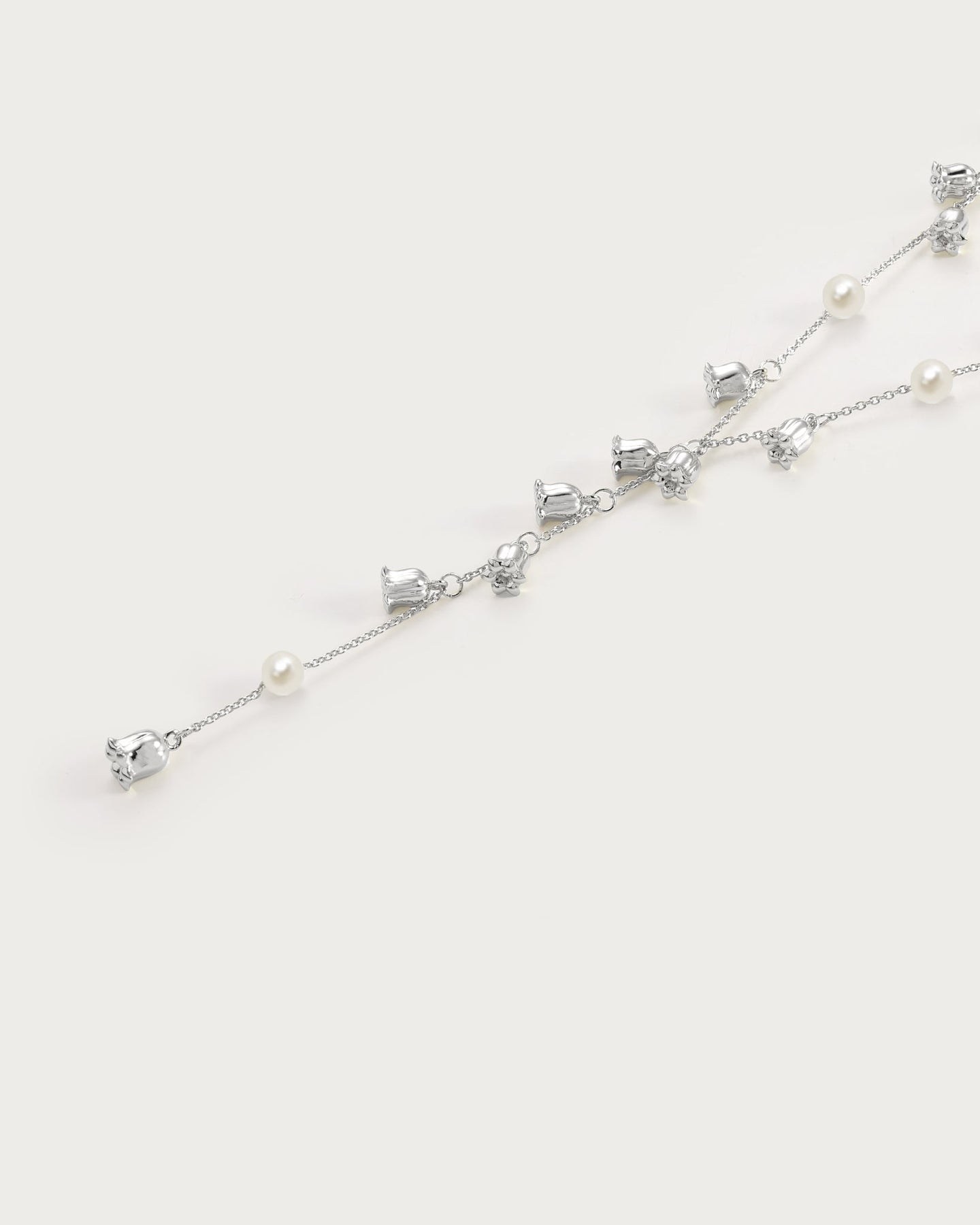 Lily of the Valley Pearl Lariat Necklace in Silver