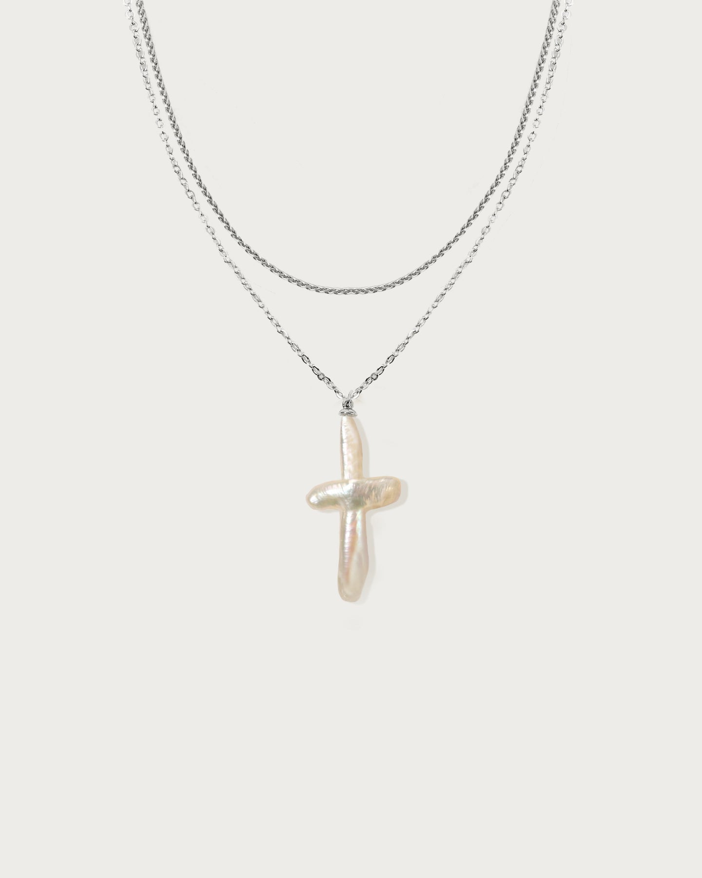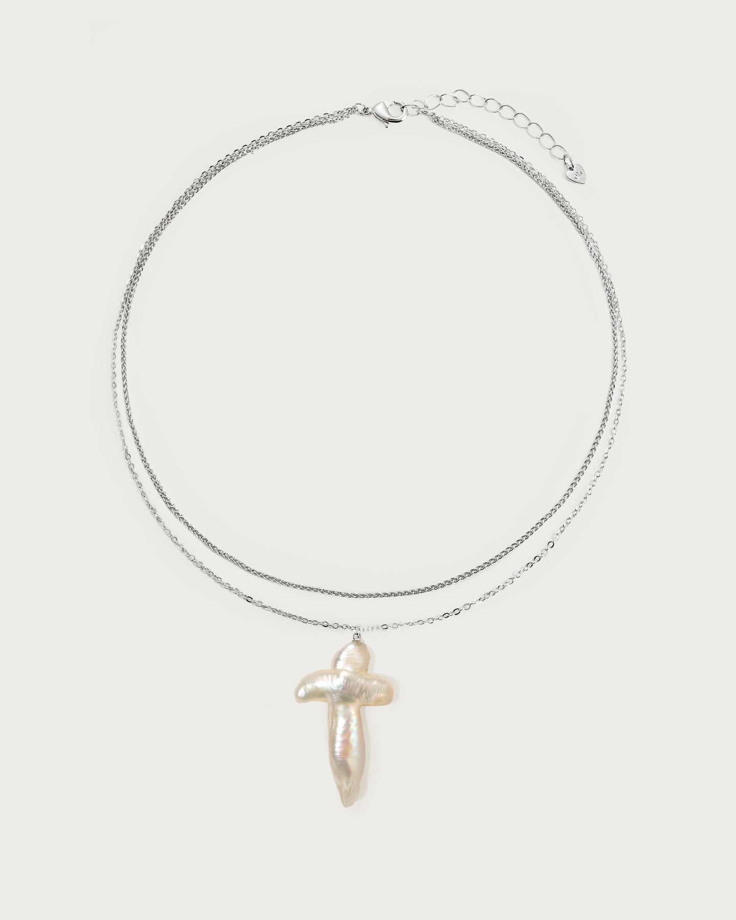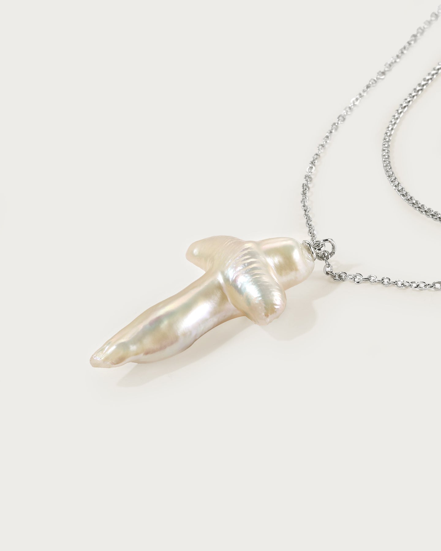 • Rhodium plated brass, baroque pearls