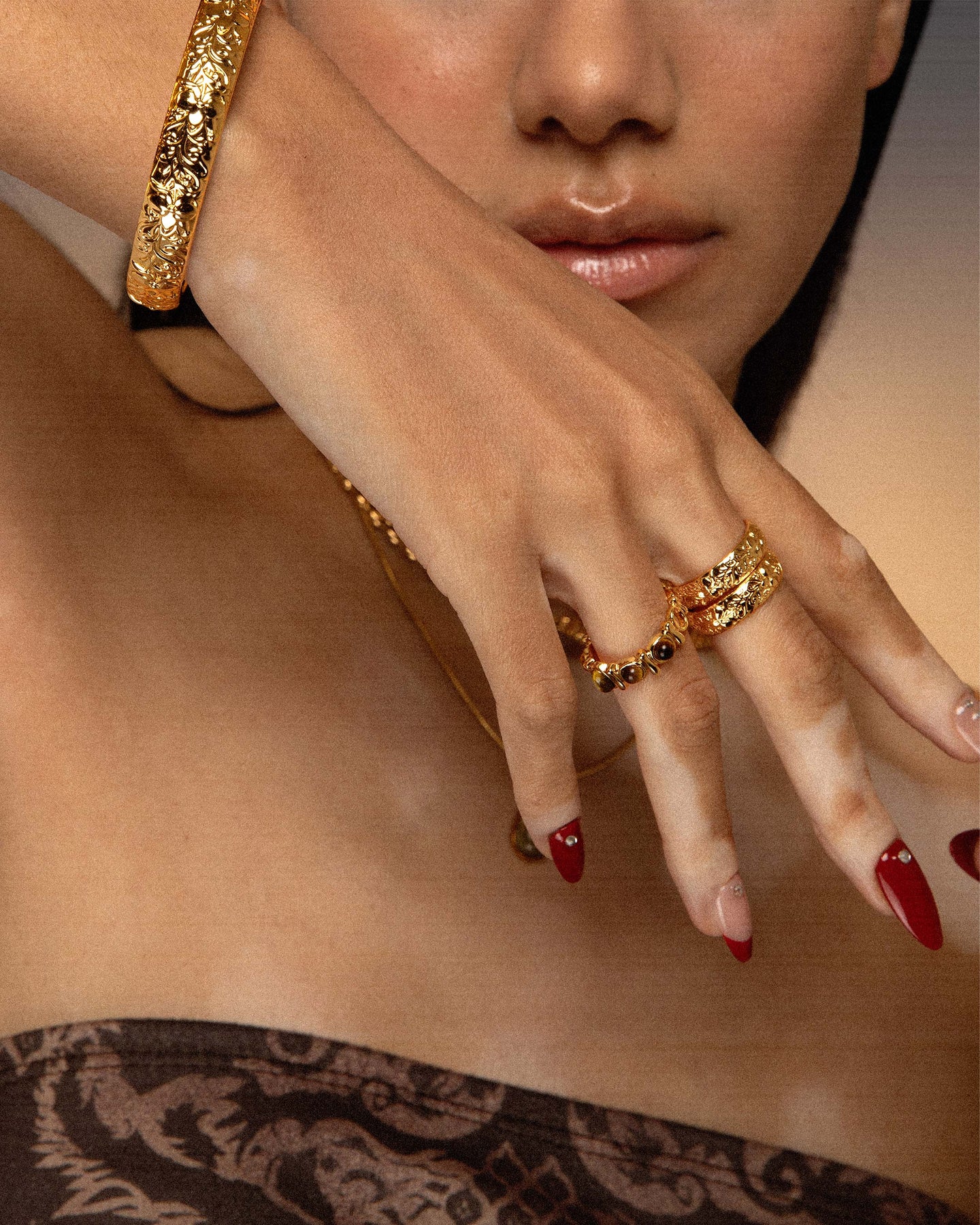 - Materials: 18k gold plated brass