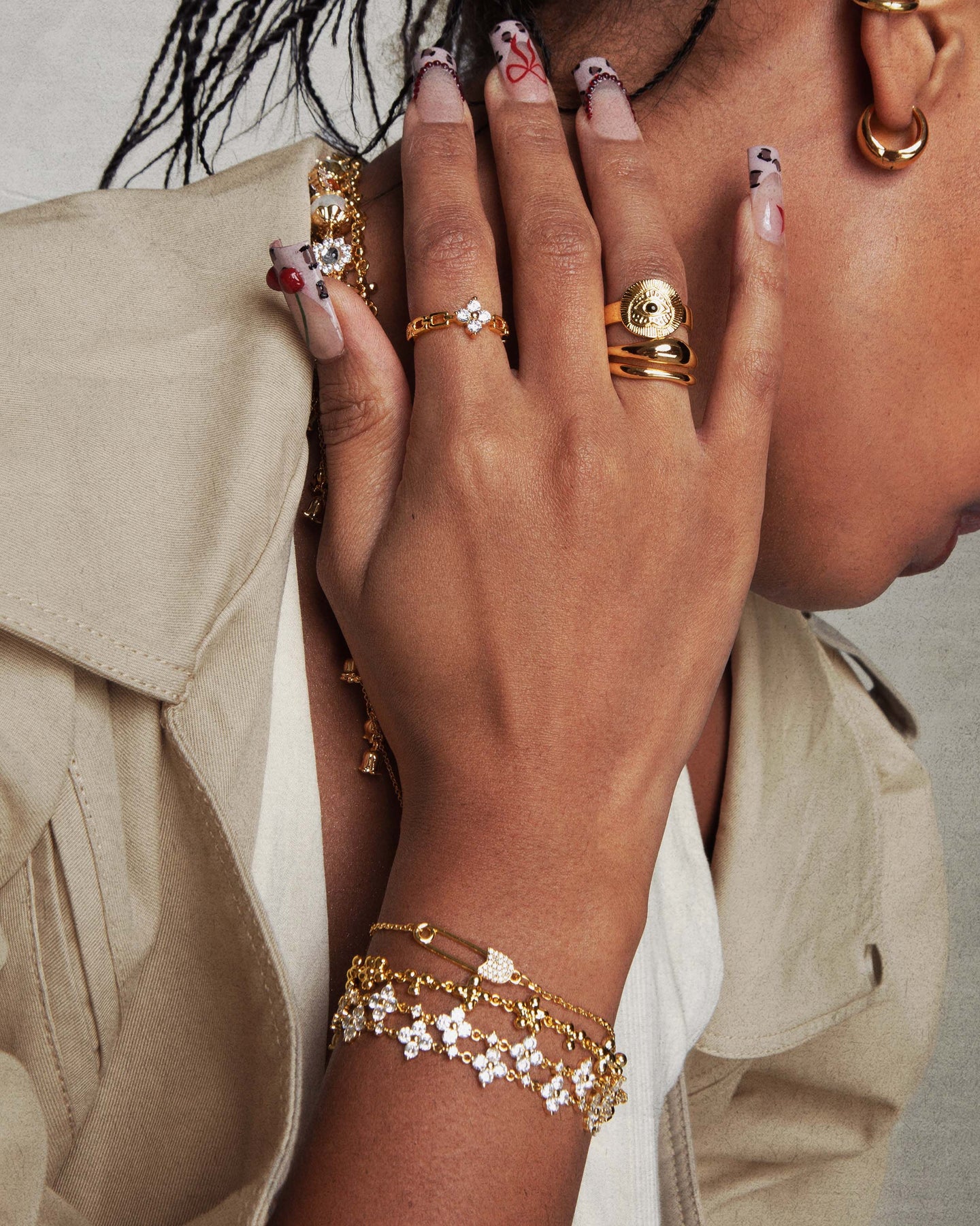 Let this set to serve as a sparkly reminder, babe, that luck is always by your side. With every lift of your hand, you carry an invisible glistening link to fortune. Adorn yourself with a touch of shimmer, and let luck accompany you en route. Plus, the bracelet is adjustable, ensuring a perfect fit for your wrist!
