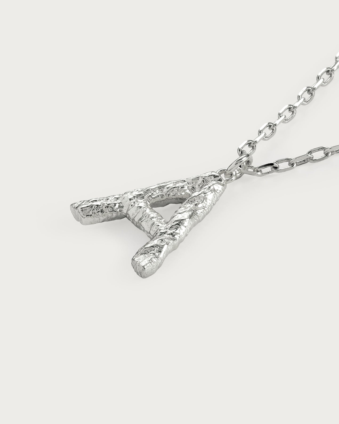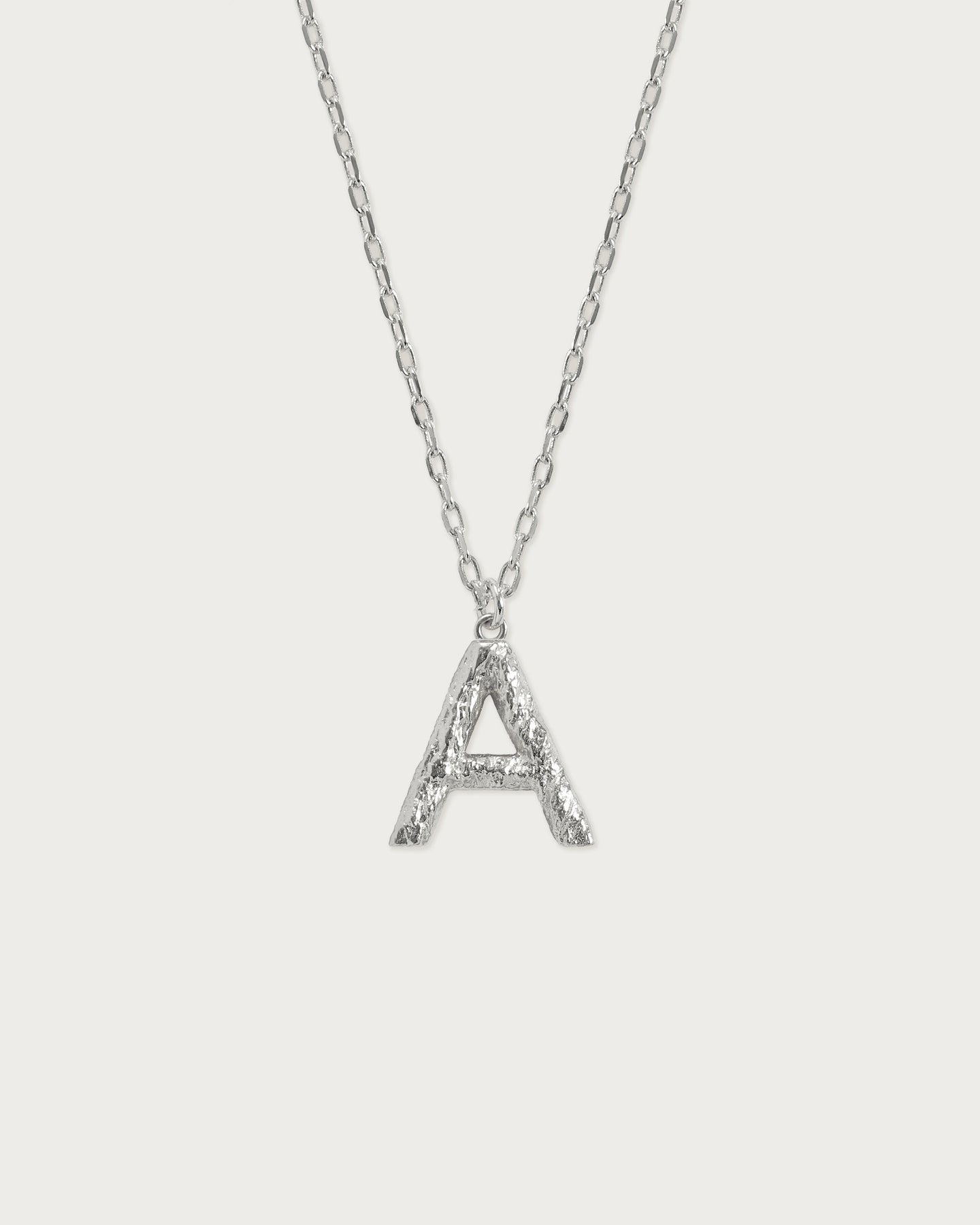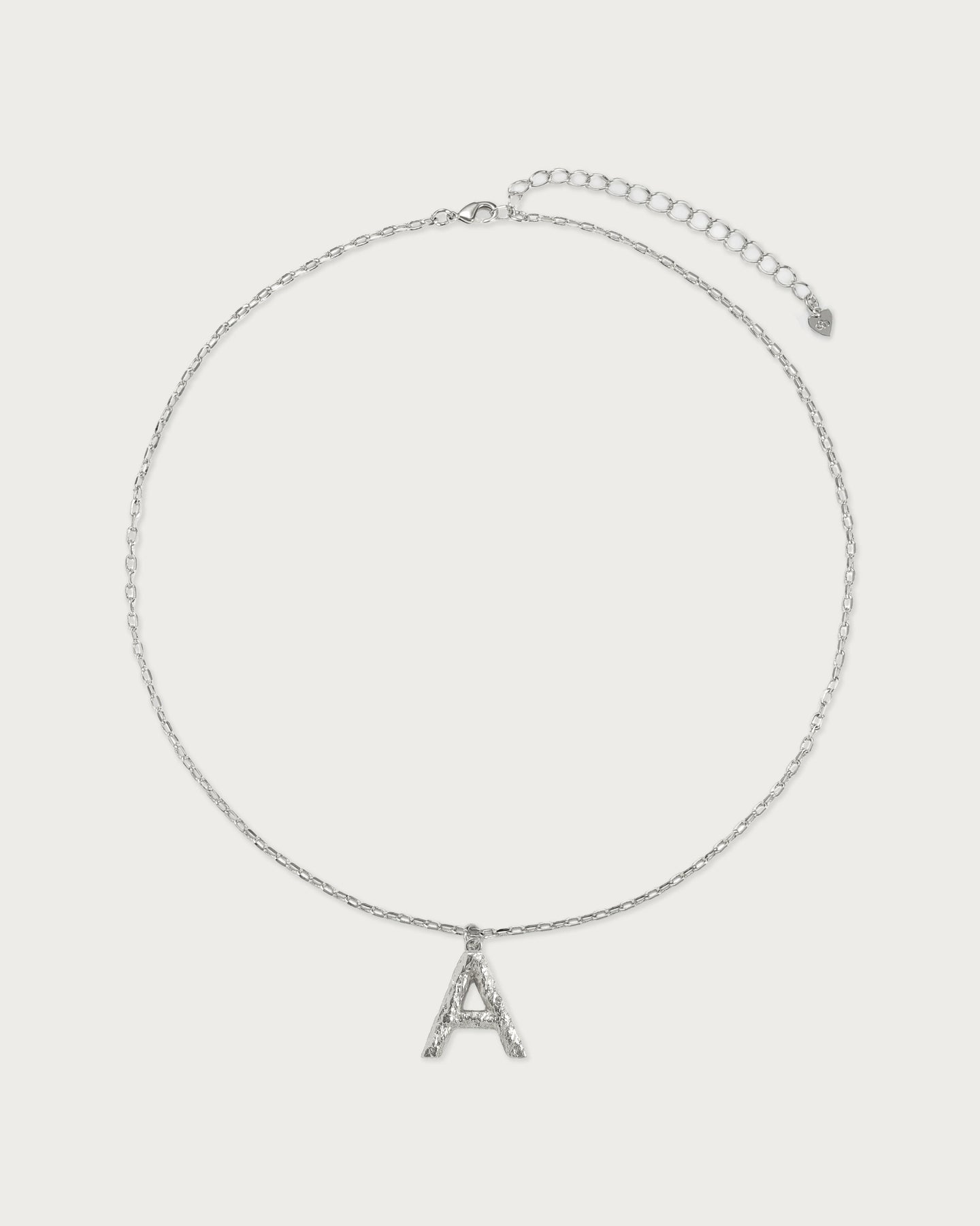 This silver-toned necklace features a sculptural textured letter pendant, available in all 26 alphabets. Feels personal yet unmistakably statement. The rugged finish adds an edge to the familiar, making it the perfect everyday layer with a touch of character. Wear your initial, your lover’s, or just the one that feels right.