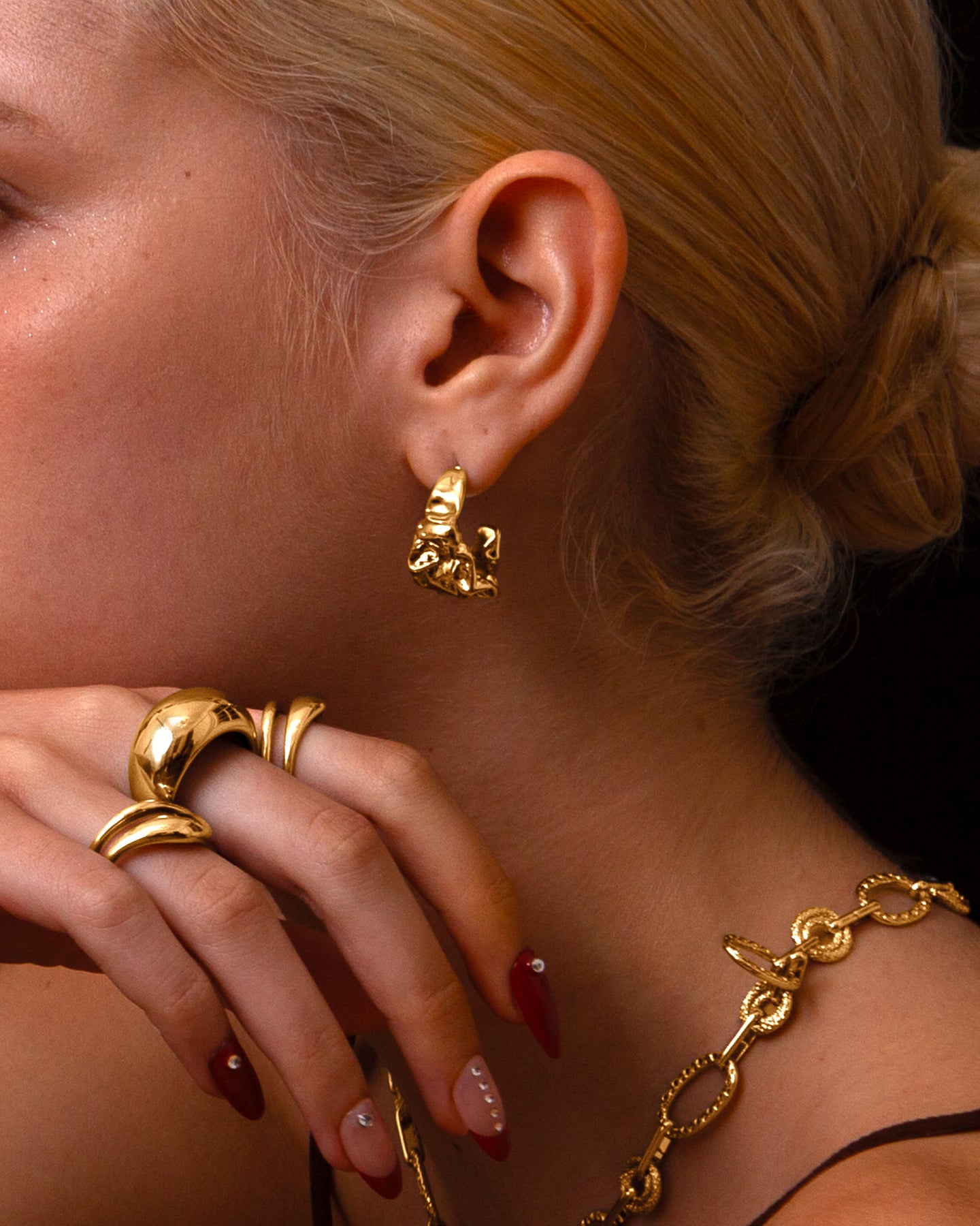 Textured Molten Earrings in Gold