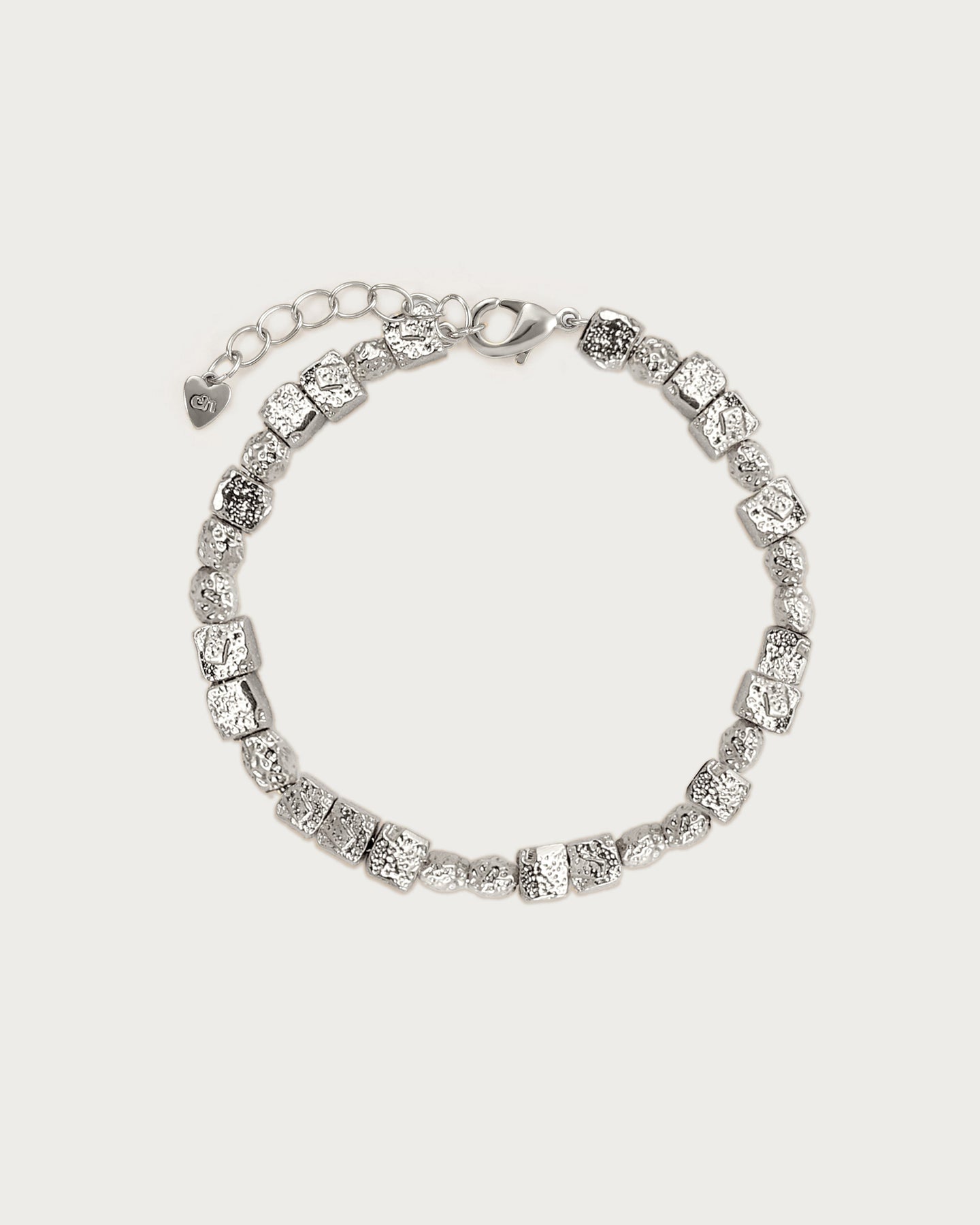 Each uneven silver cube feels like a tiny keepsake, as if it has been shaped by time, touch, and a little bit of mischief. The way each facet catches light feels quietly magnetic, never trying too hard yet impossible to ignore. Wear it when you want to carry a glimmer of something raw, honest, and beautifully imperfect.