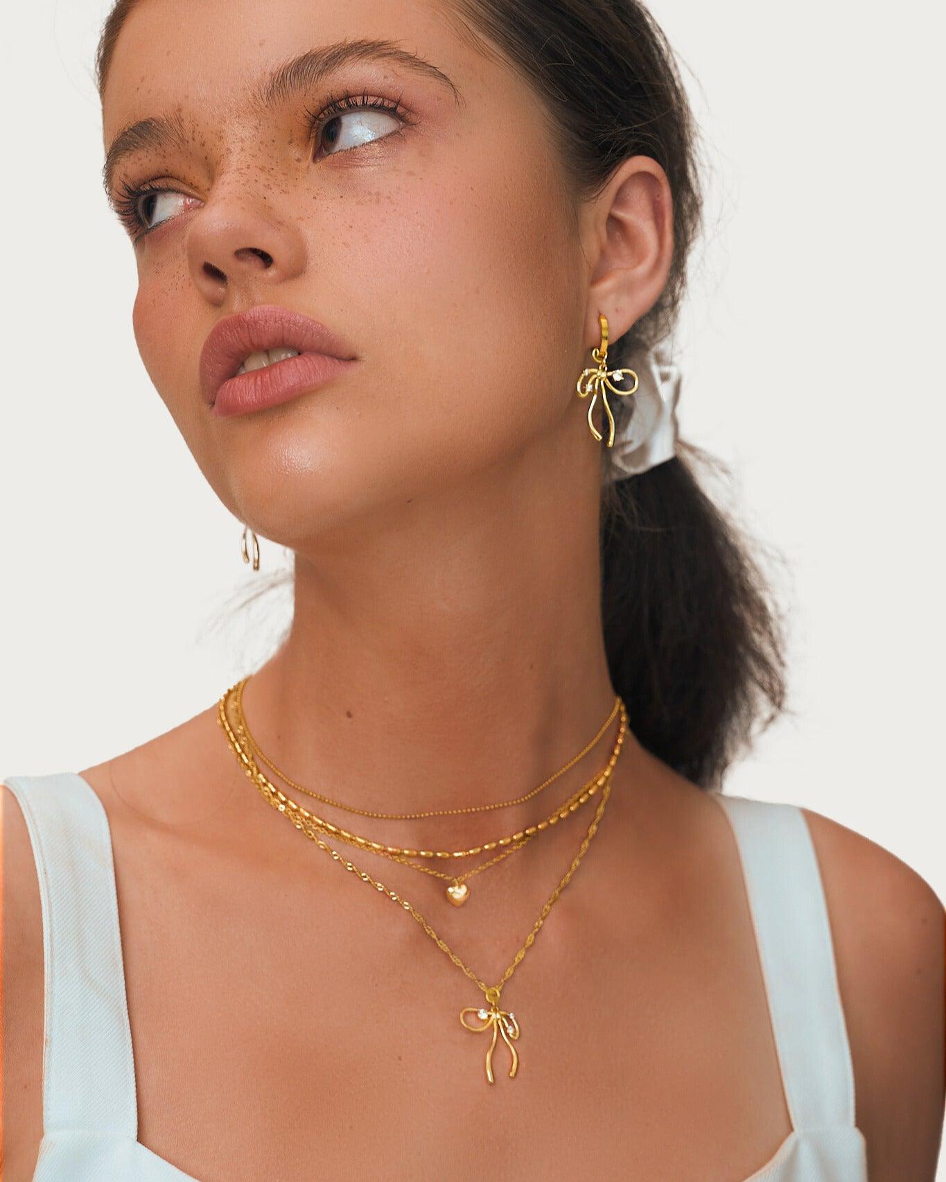 The fusion of a delicate ribbon motif with shimmering cubic zirconia stones elevates the contemporary balletcore aesthetic, providing an elegant addition to any modern ensemble.