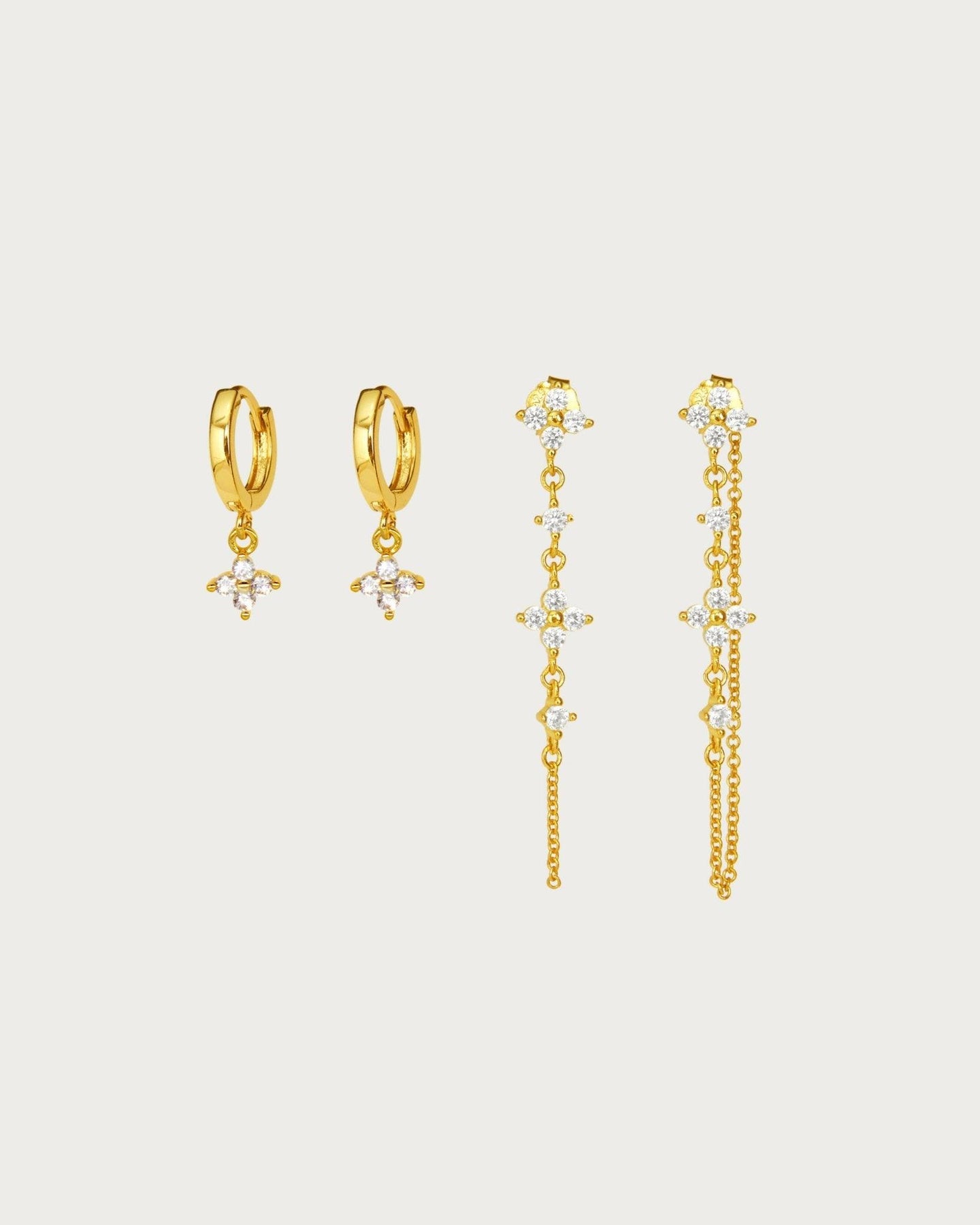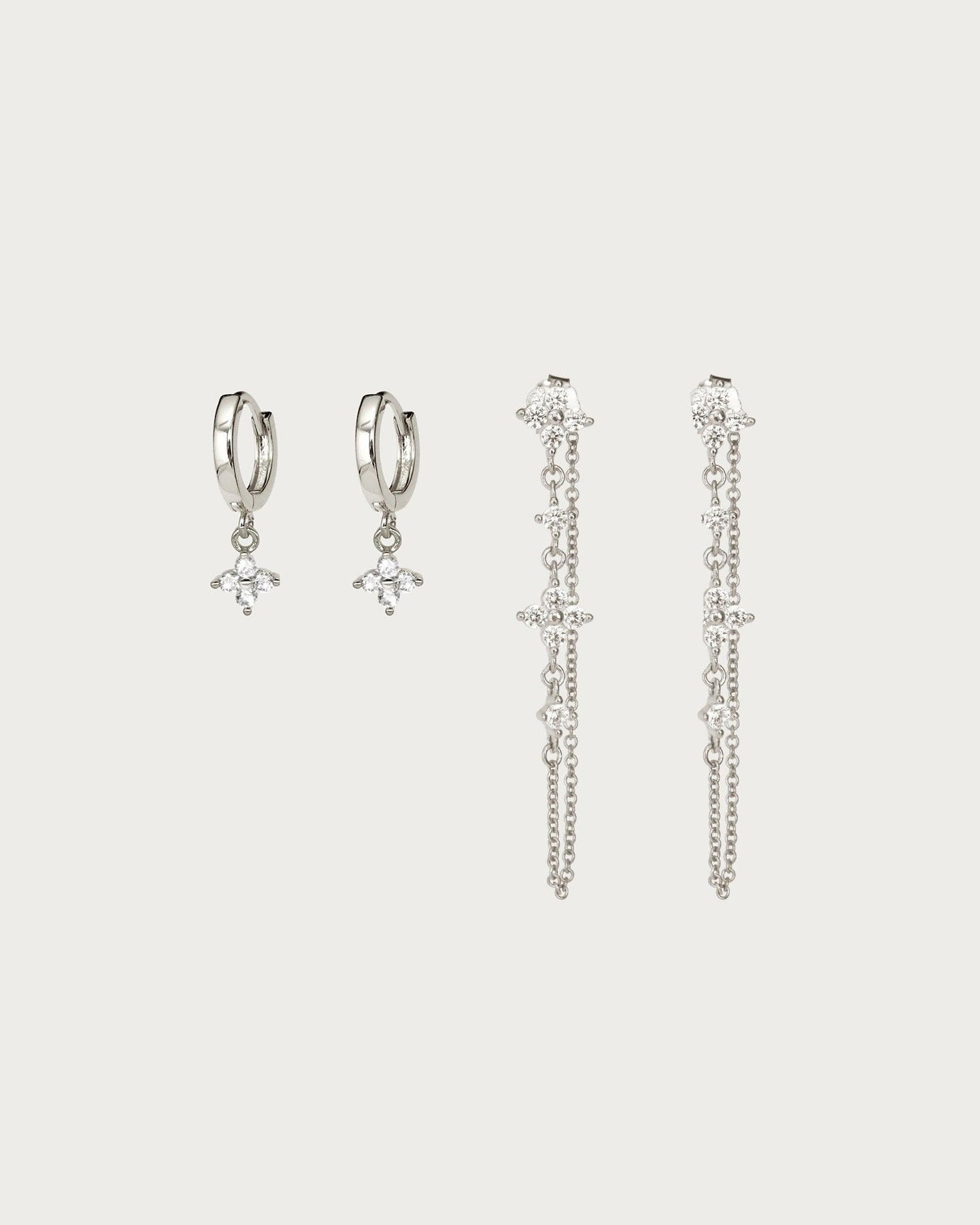 This Earrings stack set contains Silver Clover Drop Earrings, Clover Mini Hoop Earrings in Silver