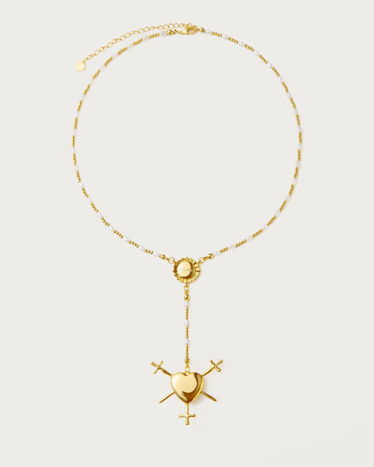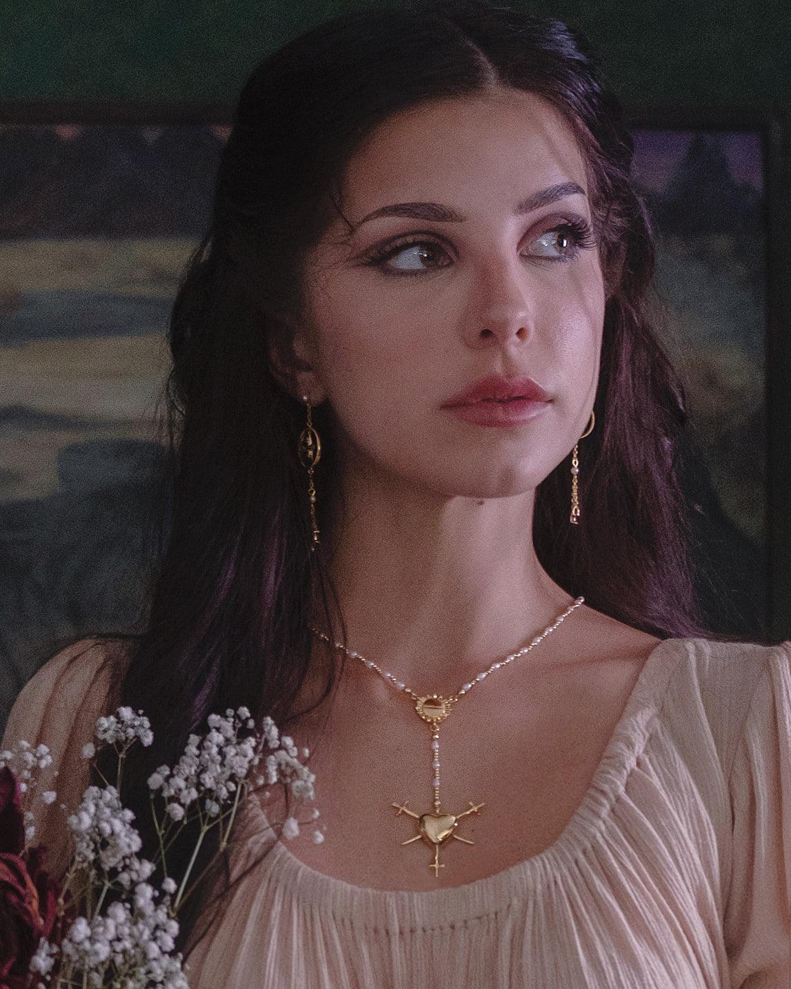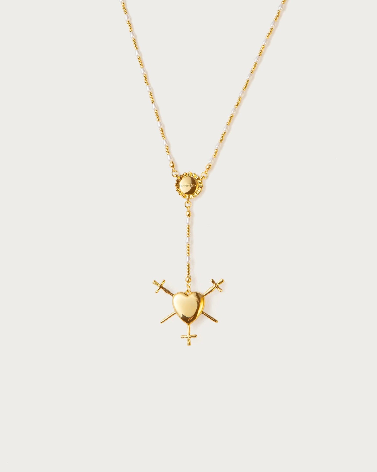 Three of Swords Rosary Necklace in Gold