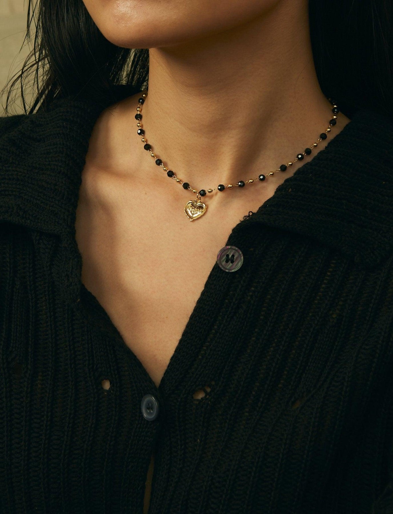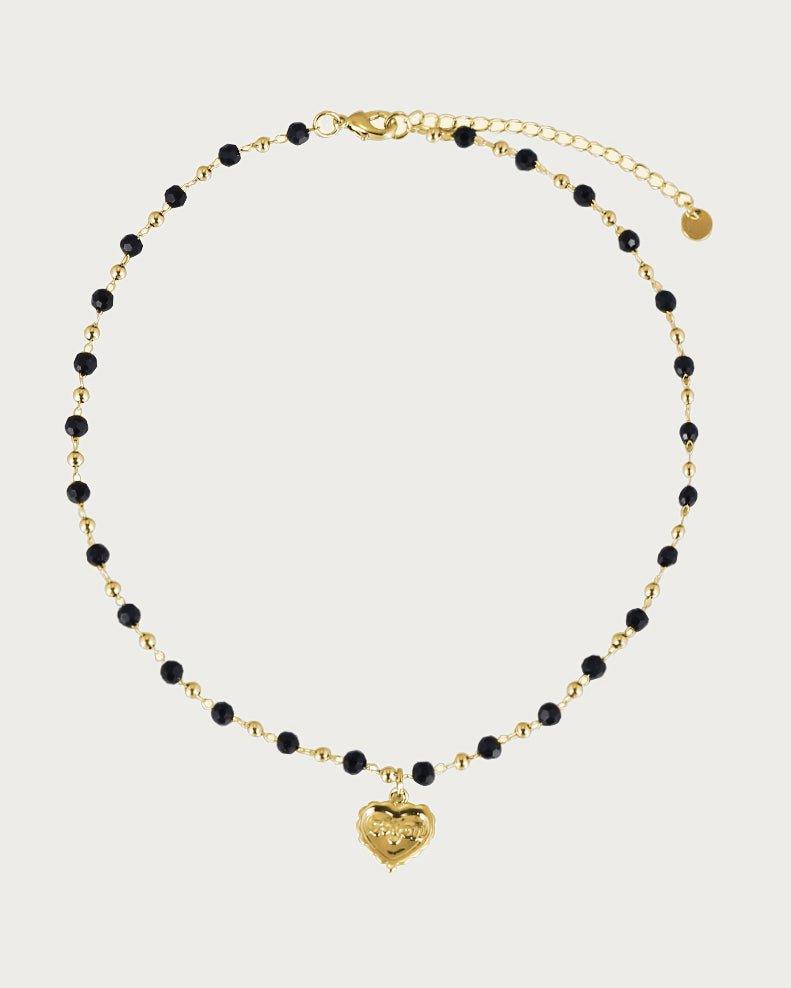 Ignite your style with our captivating Black Beaded Heart Necklace. Meticulously crafted with attention to every detail, this exquisite accessory showcases a delicate heart pendant with shimmering black beads. Shop now to make a statement that transcends trends and leaves a lasting impression.